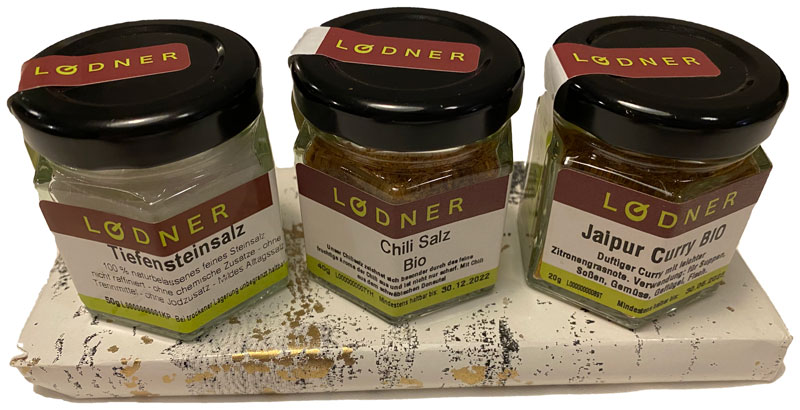 Kleines Dankeschön mit Chili Salz, Tiefensteinsalz und Jaipur Curry treffen Sie immer den richtigen Geschmack.